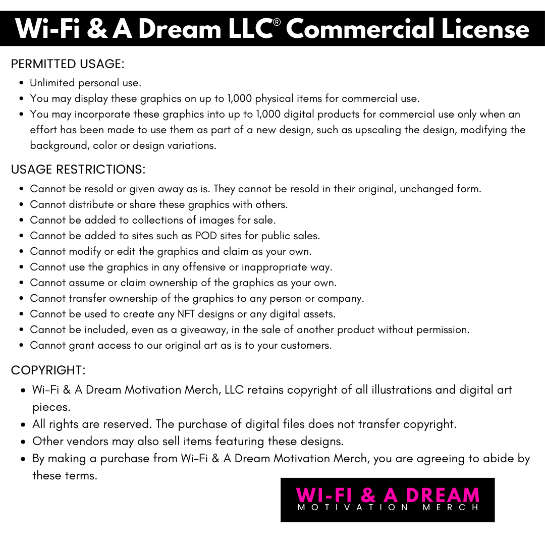 - Commercial Use License – Whether it’s for your brand, your customers, or your creative empire, the possibilities are endless.